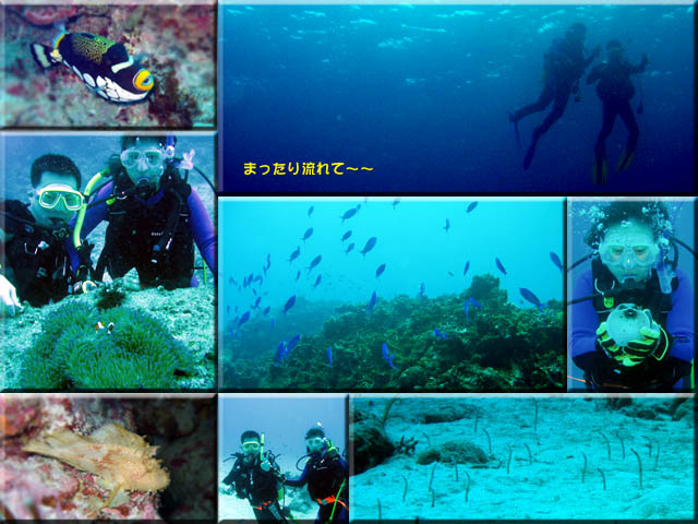 が入っていたので、身体を一杯に延ばしてゆ〜らゆらしてました。沖のエダサンゴの群生には無数のデバスズメや黄色のハダカハオコゼ、サンゴに擬態してる
