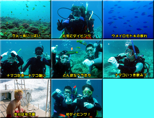 昨日に続いて今日も快晴です。行き帰りの船もほとんど揺れず、太陽の下で日焼けしちゃいました。 最初はサンゴが綺麗な儀志布西でエントリー。ちょっと透明度は落ちていましたが、綺麗なサンゴがいっぱいです。 大きなハマサンゴ、人の指みたいなユビエダサンゴ、キャベツみたいなリュウキュウキッカサンゴ、テーブルサンゴなどなど。 それらのサンゴには沢山のトロピカルフィッシュが群れてます。緩やかな流れでのんびりまったりしちゃいました。