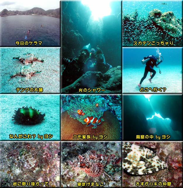 【読谷生簀】 気温31度、水温29度、透明度20m、流れあり 【真栄田岬】 気温31度、水温29度、透明度22m、流れなし 【山田ポイント】気温32度、水温29度、透明度20m、流れなし 【真栄田岬】 気温31度、水温29度、透明度26m、流れなし