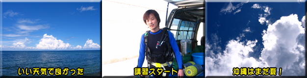 【トウマ2】 気温30度、水温28度、透明度25m、流れなし 【野崎】 気温31度、水温28度、透明度30m、流れあり 【アリガー南】気温29度、水温28度、透明度30m、流れあり